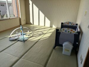 脱衣所にはベビーベッドはもちろん、授乳室まであって、